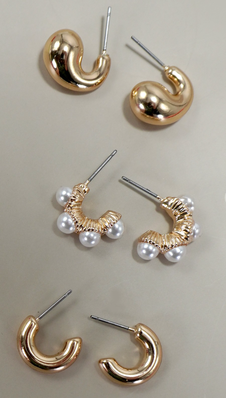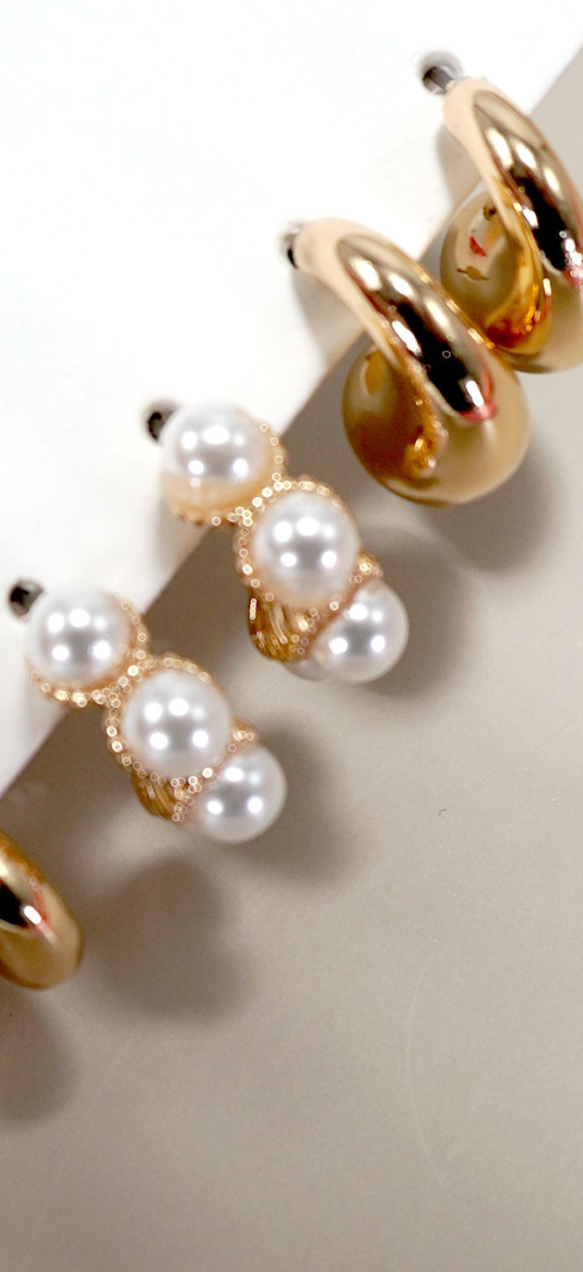 Introducing the Gold Huggie Trio—three adorable pairs of hypoallergenic pearl gold huggies that'll have you saying "yes" to every ear combo! Mix and match these delicate beauties for endless styling possibilities. Perfect for sensitive ears, these lightweight stunners won't weigh you down. Stack them, wear them solo, or gift the whole set to your bestie. Cute, comfortable, and totally versatile—what's not to love?